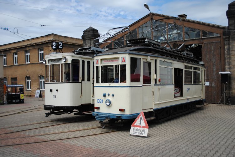 Triebwagen 15 und 1331 vor der Schmalspurhalle