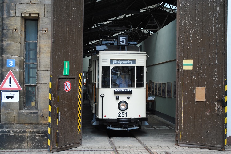 Triebwagen 251 sonnt sich am Hallentor der Schmalspurhalle